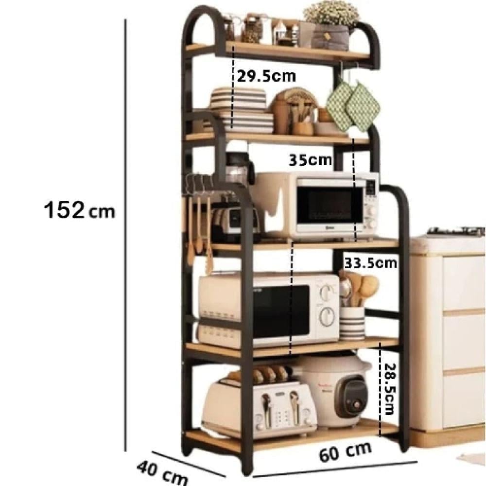مصنوع من معدن مطلي أسود أو أبيض بلمعة أنيقة، مقاوم للصدأ والخدوش، ورفوف من خشب مضغوط سميك بلمسة طبيعية تعطي فخامة وأناقة. يتحمّل الأجهزة الكهربائية الثقيلة مثل المايكرويف والفرن الصغير والمحضّرات بدون ما يهتز أو يضعف.