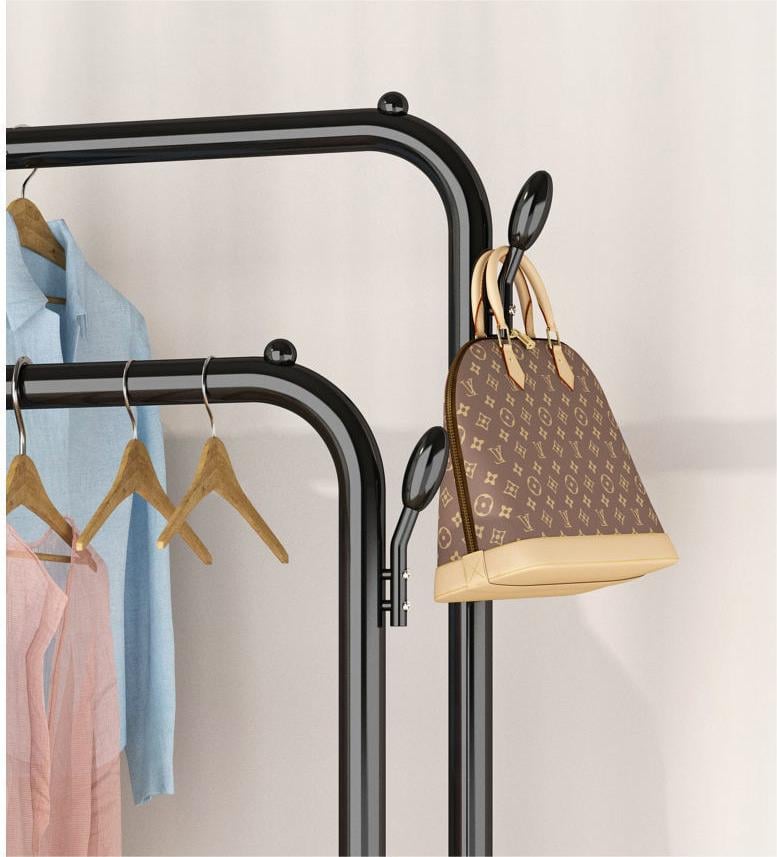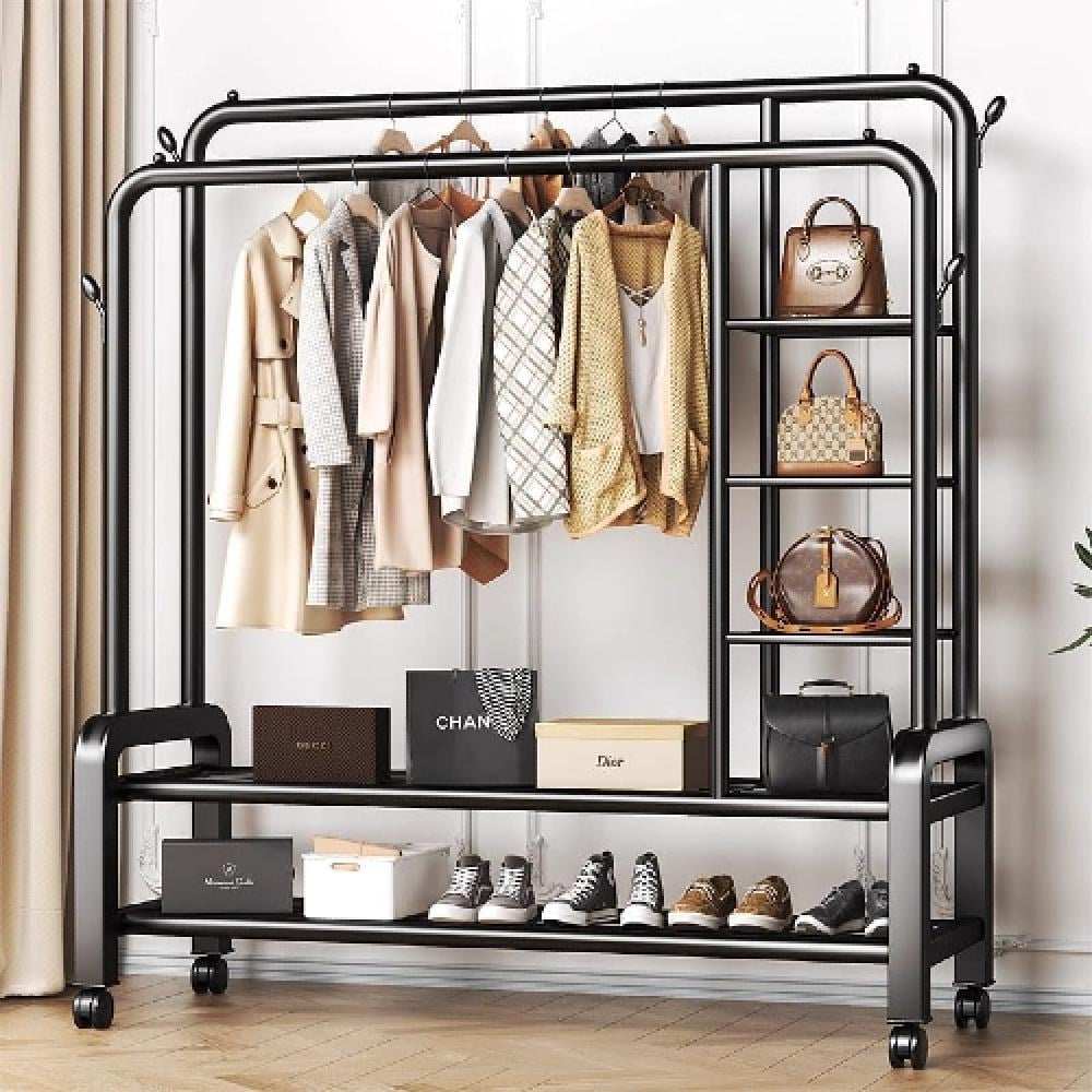 •	ستاند معدني للملابس مع رفوف سفلية وجانبية